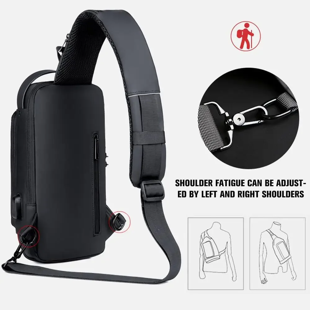 Crafted from durable waterproof Oxford fabric, this bag features a breathable mesh back for superior comfort and a secure zipper closure to keep your essentials safe. The built-in USB charging port ensures your devices stay powered on the move, making it ideal for busy, on-the-go lifestyles.